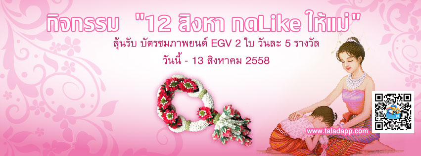 taladapp.com ฉลองวันแม่โดยจัดกิจกรรม" กดLike ให้แม่" ระยะเวลา 8-13 สิงหาคม 2558