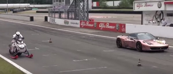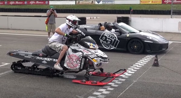 เรียกได้ว่าเป็นอีกหนึ่งการกีฬาที่มันส์สะใจมากๆ เลยทีเดียวสำหรับกีฬา เจ็ทสกีหิมะ แต่ในวันนี้มันไม่ได้มาขับเคลื่อนอยู่บนหิมะอย่างที่เราๆ เคยพบเห็นกัน แต่ว่าเจ้าเจ็ทสกีหิมะคันนี้ มาขับเคลื่อนอยู่บนถนน โดยการมาดวลความเร็วระดับเทพกับสุดยอดซูปเปอร์คาร์ที่ได้รับฉายาว่า ม้าลำพอง นั่นก็คือ Ferrari งานนี้ใครจะอยู่ใครจะไป มาติดตามชมกันเลยครับ