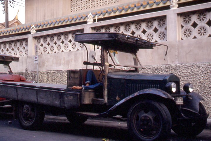 BKK 1989 รถกุดังรุ่นเก่า.ถ่ายจาก ถนนมังกร ข้างวัดเล่งเน่ยยี่ (วัดมังกรกมลาวาส).เป็นรถกุดังของร้านเอี๊ยะเซ้ง ที่อยู่ปากซอย ด้านถนนเจริญกรุง....ภาพถ่ายเมื่อปี 2532..แต่รถน่าจะเก่ากว่านั้นมาก.. และในปีนั้นน่าจะยังใช้วิ่งได้อยู่นะ เพราะคนที่หลับอยู่บนรถน่าจะเป็นคนขับรถของคันนี้.เครดิต รายละเอียด คุณ หมู เวสป้า..