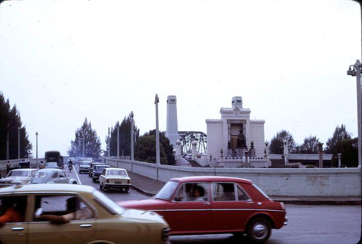 BKK 1974ภาพรถเก่าที่เชิงสะพานพุทธฯ ฝั่งพระนคร ยุคปี 2517