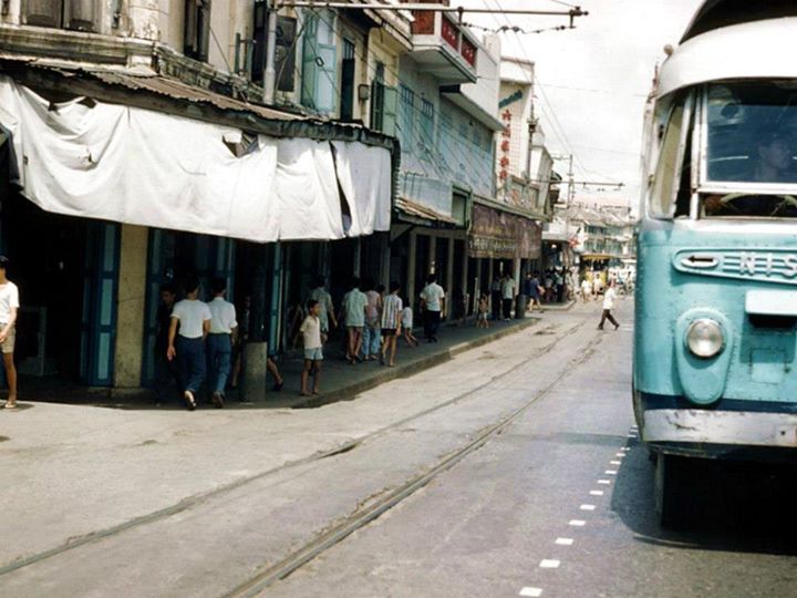 1961 YAOWARAJ Road BANGKOK ..ถนนเยาวราชปี 2504 แถวย่านเวิ้งนาครเขษม ยืนถ่ายโดยหันหลังให้สะพานเหล็ก ปัจจุบันตึกในภาพอยู่เกือบครบ ป้ายรถรางอันสุดท้ายเห็นลางๆ ตึกแถวและตัวอาคารทรงแบบเก่าทั้งสิ้น (แต่คงทันสมัยสำหรับยุคนั้น).รถรางนี้ต้องเป็นสายสามเสน และ รถ เมล์นิสสันดีเซลสีฟ้าสดของ รสพ. นี่ก็ต้องเป็นรถเมล์ สาย 1 (ท่าเตียน - ถนนตก) ที่กำลังบ่ายหัวไปทางสะพานเหล็กและกำลังจะไปสุดสายที่ท่าเตียน (Moderator Wiz)....credit Keith's Old Military Photos