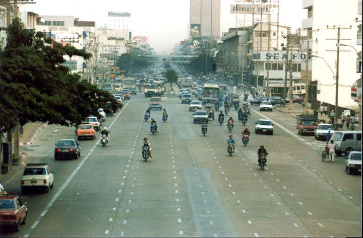 Sukhumvit Rd. bangkok 1988 ถนนสุขุมวิท ปี 2531 เหมือนมีร่องรอยการรื้อถอนเกาะกลางถนนหมาดๆ