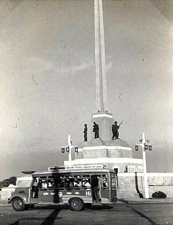victory monument 1950 bkk รถเมล์ยุคโบราณกำลังวิ่งผ่านอนุสาวรีย์ชัยฯ เมื่อปี 2493