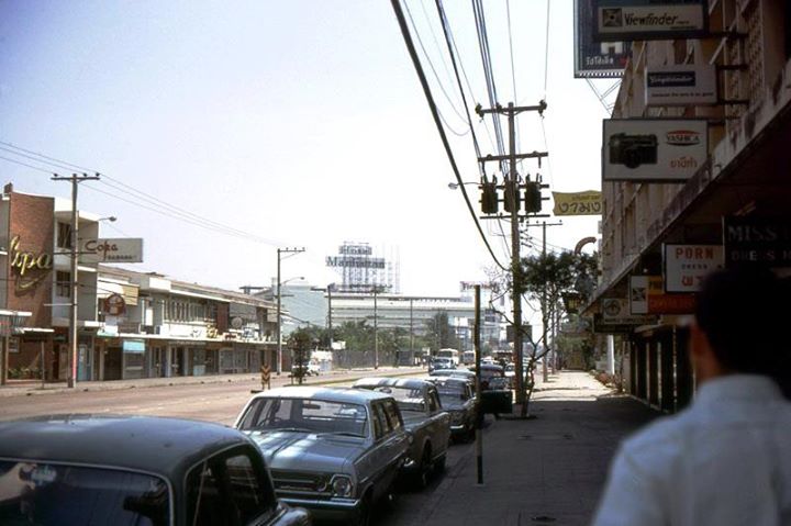 Bangkok, Sukhumvit 1969.... ภาพเก่าถนนสุขุมวิท ปี 2512 ทางด้านซ้ายที่เด่นชัด โคปา คลับ ถัดไปโรงแรมชวลิตหรือโรงแรมแอมบาสเดอร์ในยุคปัจจุบัน