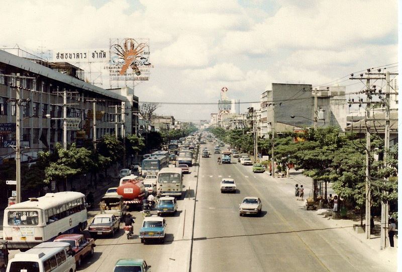 1984_THAILAND - BANGKOKถนน ราชปรารภ ประตูน้ำ ยุคปี 2527 ร้านค้าที่รู้จักข้างทางเก่าๆ ปัจจุบันก็น่าจะยังอยู่กันหลายร้าน เช่น ร้าน เกรทส์ ร้านฟอกซ์ มองตรงไปแถวเสาไฟฟ้าแรงสูงตรงนั้นก็จะมีทางรถไฟตัดผ่าน คือย่านมักกะสัน ตรงริมทางซ้ายของภาพนี้ที่ติดกับทางรถไฟจะมีร้านศิริชัย ไก่อย่าง ต้นตำรับไก่หมุน เจ้าเก่าแก่..ที่เคยเห็นตั้งแต่แอดมินยังเด็กๆแต่ร้านตรงนี้หายไปนานแล้ว..ได้ข่าวว่ามีสาขาอยู่ที่ลาดพร้าว และ วงศ์สว่าง