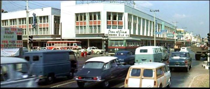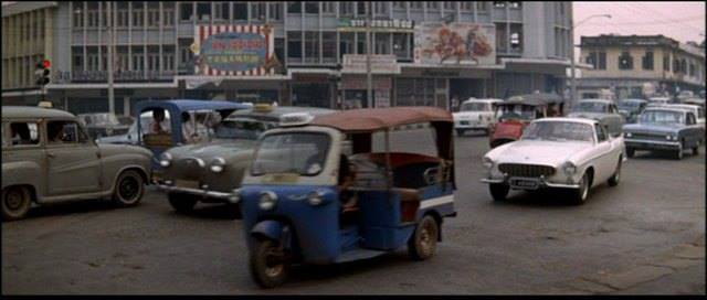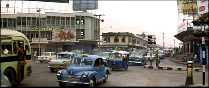 1952 Morris Minor MkII in Banco à Bangkok pour OSS 117, Movie, 1964.....รถและถนนในเมืองกรุงยุค พ.ศ.2507 ภาพจากหนังฝรั่งเศส เรื่อง Banco à Bangkok pour OSS 117, Movie, ที่ยกกองมาถ่ายทำที่เมืองไทย