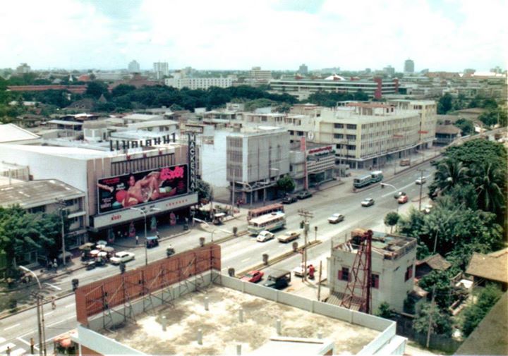 ถ่ายจากบนสะพานลอย สมัยที่ ร้านทองและบาจา ตรงสี่แยกยังไม่ถูกรื้อไป