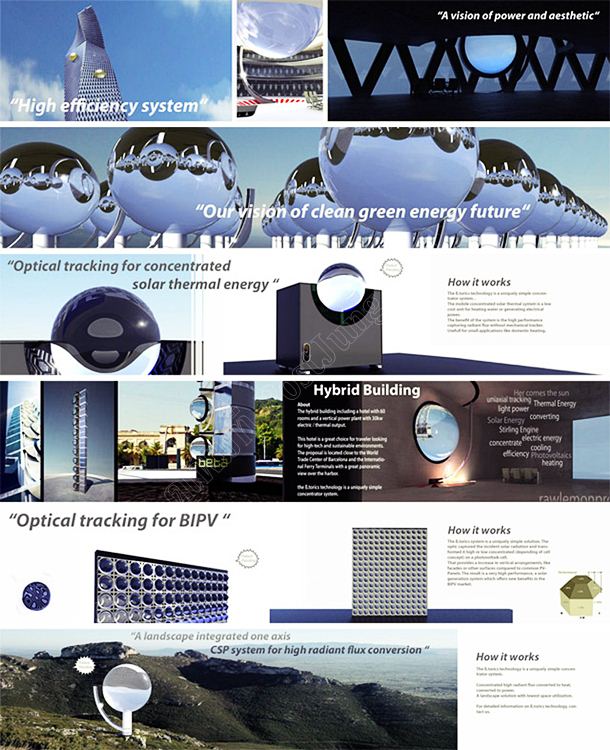 ที่สามารถรวมแสงแดด ให้มีความเข้มของแสงไปยังแผงโซล่าเซลเพื่อกำเนิดพลังงานไฟฟ้า ได้ทุกแนวแกน