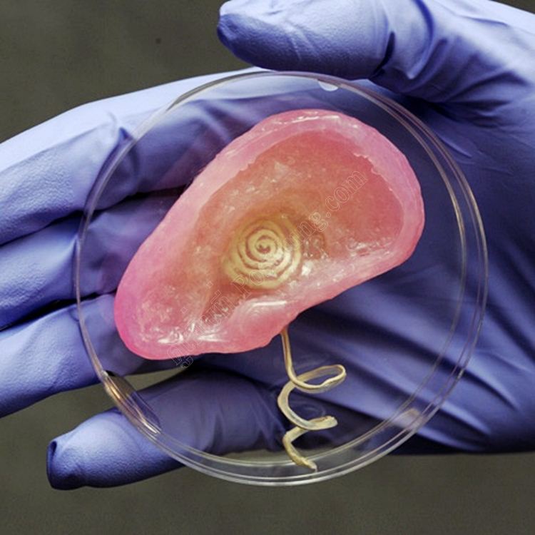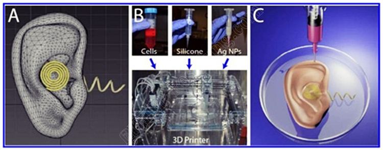 มีการใช้ไฮโดรเจลที่ได้รับการผสมกับเซลล์จากลูกวัวและพันกับโพลิเมอร์ที่มีอนุภาคนา โนของเงิน ติดตั้งอุปกรณ์ที่ทำให้สามารถรับคลื่นความถี่วิทยุได้ ผลการทดสอบถือว่าได้ผลดีเกินคาด ดีกว่าหูปกติของคนเราเสียอีก