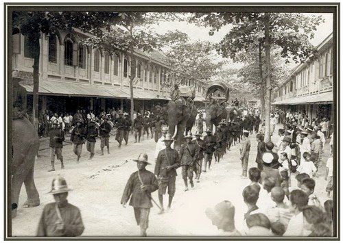 สมัย ร.5 ในภาพเป็นพระราชพิธีที่จัดขึ้นหน้ากระทรวงกลาโหม..ถนนมหาไชย
