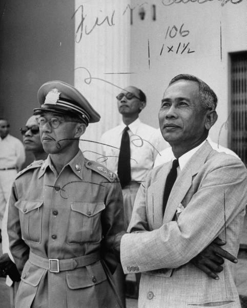 ท่านๆเหล่านี้เป็นระดับบิ๊กในอดีตค่ะ ภาพจากประมาณปีพ.ศ.2495 ไม่ทราบสถานที่...ในภาพจอมพล จอมพลเรือ จอมพลอากาศแปลก พิบูลสงคราม (14 กรกฎาคม พ.ศ. 2440 - 11 มิถุนายน พ.ศ. 2507) หรือที่เรียกกันทั่วไปว่า "จอมพล ป." เป็น นายกรัฐมนตรี ที่มีเวลาดำรงตำแหน่ง รวมกันมากที่สุดของไทย คือ 14 ปี 11 เดือน 18 วัน รวม 8 สมัย มีนโยบายที่สำคัญคือ การมุ่งมั่นพัฒนาประเทศไทยให้มีความเจริญรุ่งเรืองทัดเทียมนานาอารยะประเทศ มีการปลุกระดมให้คนไทยรู้สึกรักชาติ โดยออกประกาศสำนักนายกรัฐมนตรี ว่าด้วย "รัฐนิยม" หลายอย่าง ซึ่งบางอย่างได้ประกาศเป็นกฎหมายในภายหลัง หลายอย่างกลายเป็นวัฒนธรรมของชาติ เช่น การรำวง ก๋วยเตี๋ยวผัดไทย เป็นผู้เปลี่ยนชื่อ "ประเทศสยาม" เป็น "ประเทศไทย" และเป็นผู้เปลี่ยน "เพลงชาติไทย" มาเป็นเพลงที่ใช้กันอยู่ในปัจจุบัน