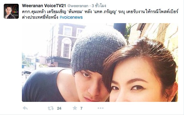 ขณะที่ ทวิตเตอร์ @weeranan ของผู้สื่อข่าว Voice TV มีรายงานว่า แทค ภรัณยู ได้ให้ถ้อยคำกับคณะกรรมการควบคุมเครื่องดื่มแอลกอฮอล์เสร็จเป็นที่เรียบร้อยแล้ว โดยจากนี้ทางคณะกรรมการฯ จะเตรียมเชิญ ดีเจต้นหอม เข้าชี้แจงหลังถูก แทค ภรัณยู ระบุเคยรับงานให้กรณีโพสต์ภาพเบียร์ต่างประเทศยี่ห้อหนึ่ง