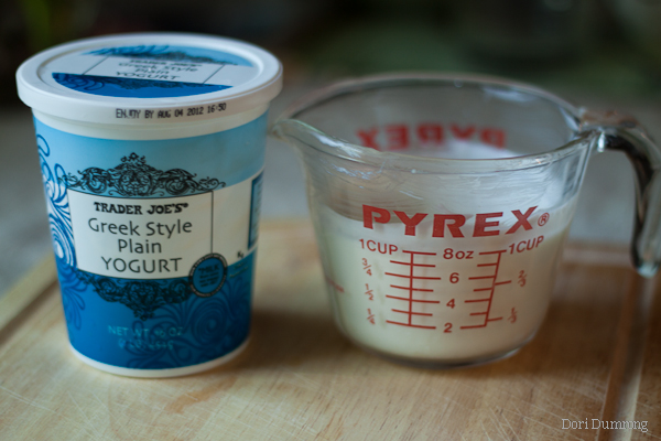 - โยเกิร์ตรสจืดธรรมดา 1 ถ้วย (8 ออนซ์) หาแบบที่มีเชื้อแอคทีฟอยู่ไว้ใช้เป็นหัวเชื้อ อย่าเอาที่มีรสหวาน ส่วนตัวเองหาไม่ได้เลยใช้กรีกโยเกิร์ตทำ อันนี้ต้องซื้อใช้แค่ครั้งแรก ครั้งต่อๆ ไปก็เก็บที่เราทำไว้เป็นหัวเชื้อต่อไปนะคะ