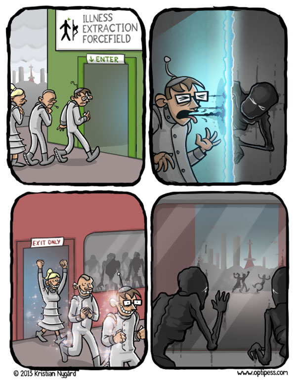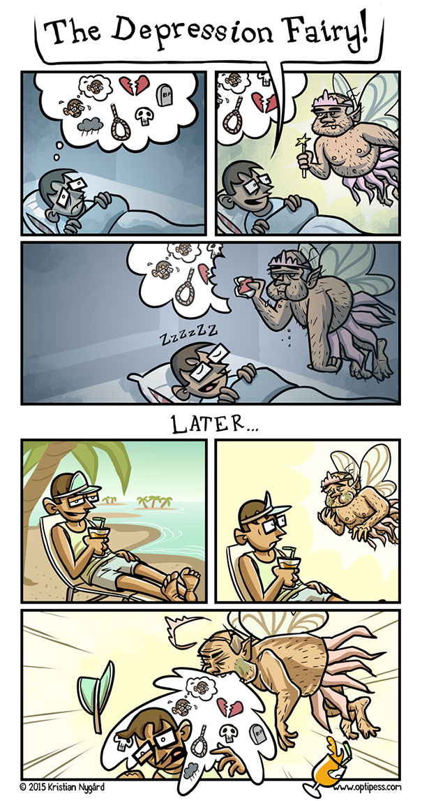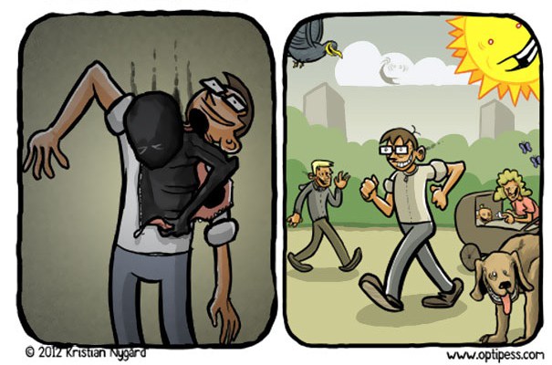 ยิ่งโลกของเราพัฒนามากขึ้นเท่าไหร่สภาวะจิตใจของคนเราก็จะยิ่งแย่ลงไปเท่านั้น Kristian Nygard นักเขียนเเละนักวาดการ์ตูนชื่อดังจากนอร์เวย์จึงได้ลองวาดการ์ตูนเพื่อเสียดสีและเปรียบเทียบการใช้ชีวิตประจำวันของมนุษย์ในปัจจุบันเพื่อที่จะทำให้รู้ว่ามนุษย์เราทุกคนล้วนเก็บความโหดร้ายและความโศกเศร้าเอาไว้ภายใต้รอยยิ้มอันสวยงามอยู่เสมอจะเป็นอย่างไรลองไปชมกันเลย