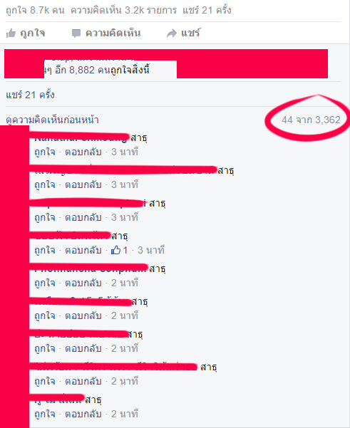 แล้วก็มีคน เข้ามาไลท์แชร์และเม้นสาธุเป็นจำนวนมาก