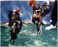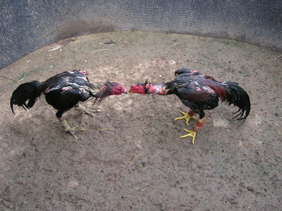 เวลาประมาณบ่าย 2 โมงเย็น เอาน้ำเช็ดตัวไก่ที่เลี้ยงเล็กน้อย แล้วเอาไก่ที่เป็นไก่ล่อ จะเป็นการล่อทางตรงหรือทางอ้อมก็แล้วแต่สะดวก แล้วล่อไก่ให้ย้าย คือเอาไก่ล่อ ๆ วนไปข้างซ้าย 10 รอบ เย้ายวนไปทางขวา 10 รอบ ย้ายจนกว่าไก่ตัวถูกล่อจะไม่ล้มจึงจะใช้ได้ แล้วล่อให้ไก่บินบ้าง ล่อประมาณ 20 - 25 นาทีก็พอ พอเสร็จจากการล่อเอาขนไก่ปั้นคอ พอหายเหนื่อยแล้วอาบน้ำได้ เสร็จแล้วผึ่งแดดให้ขนแห้งแล้วกินอาหารได้