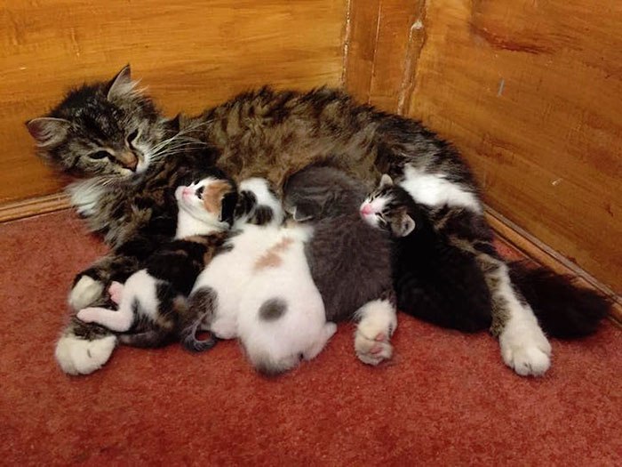 ตอนแรกเขาต้อนรับเจ้าแมวตัวหนึ่งเข้ามา และมันคงรู้สึกอบอุ่นและปลอดภัยในที่นี้มากจนพาลูกๆของมันตามเข้ามาอยู่ด้วย