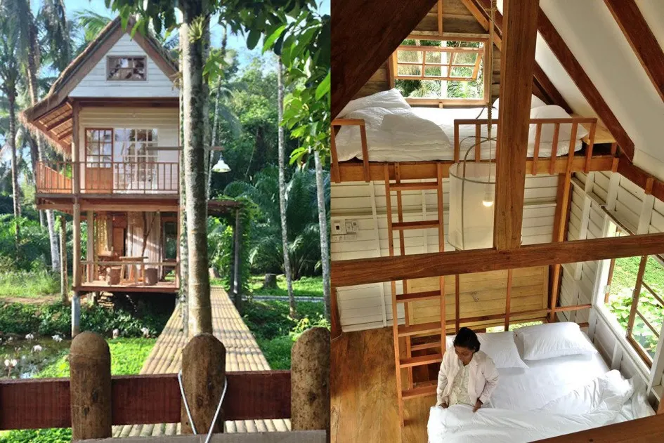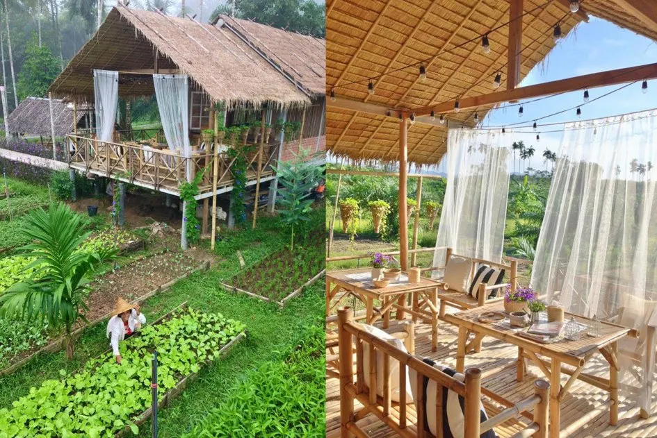 แนวคิดความพอเพียงไม่ได้หยุดอยู่ที่การทำการเกษตรเท่านั้น แต่มันสะท้อนอยู่รูปแบบสถาปัตยกรรมของอดีตสถาปนิกคนนี้เกือบทั้งหมด นำความรู้ที่ร่ำเรียนมาปรับใช้กับบ้านที่อยู่อาศัย เรือนครัว จนถึงบ้านพัก farm stay บ้านไร่ขนาดเล็ก ที่พักสำหรับนักท่องเที่ยวที่ต้องการเข้าไปเยี่ยมชมในสวนผักของเค้า เลือกใช้โครงสร้างไม้ต่อเติมเป็นบ้านที่ดูเรียบง่าย เสาต้นไผ่ หลังคาจาก รักษากลิ่นไอบรรยากาศตามธรรมชาติ ภายในที่พักก็ตกแต่งโทนขาว-น้ำตาลคล้ายกับบ้านของเค้าเอง เป็นการออกแบบที่ใส่ใจในรายละเอียดเอามากๆ เรียกได้ว่าตั้งใจมอบสิ่งที่ดีให้กับผู้ที่มาเยี่ยมชมด้วยความจริงใจ