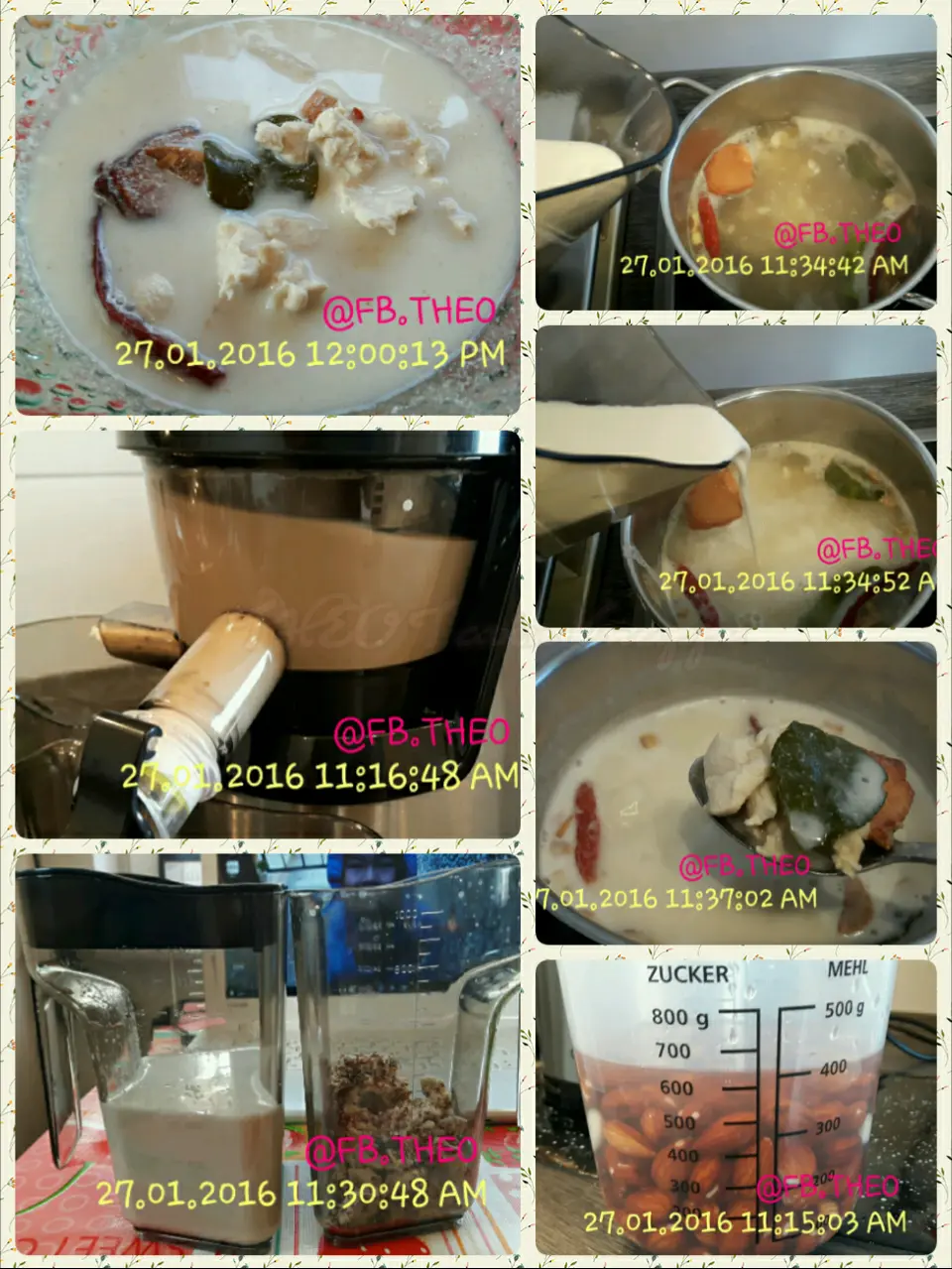 เราได้ทดลอง ทำพะแนงไก่ และ ต้มข่าไก่ โดยใช้น้ำนมอัลมอนด์ที่คั้นเอง แทนกะทิ ปรากฎว่า พะแนง และ ต้มข่าไก่ที่ได้ รสชาดอร่อยหอม ความหวานมัน ที่ได้ก็ใกล้เคียงกันกับกะทิ