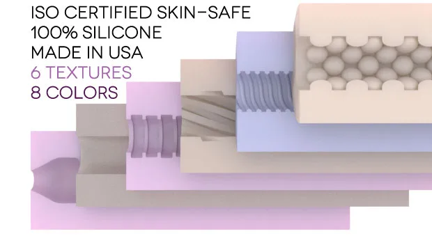 เท่านั้นยังไม่พอผู้เล่นสามารถปรับเปลี่ยนพื้นผิวสัมผัสได้ซึ่งมีให้เลือกถึง 6 แบบ 8 สี ด้วยกันทั้งผิวเรียบ , ผิวขรุขระ ตามแต่ความชอบส่วนบุคคลด้วยการถอดตัวซิลิโคนออกมา ส่วนวัสดุที่ใช้ก็จะทำมาจากซิลิโคน 100 เปอร์เซ็นต์จึงมั่นใจได้ว่าจะไม่เกิดอันตรายแก่ช่วงล่างของผู้เล่นและสามารถถอดทำความสะอาดได้ง่ายดายนำกลับมาใช้ใหม่ได้อีกด้วย