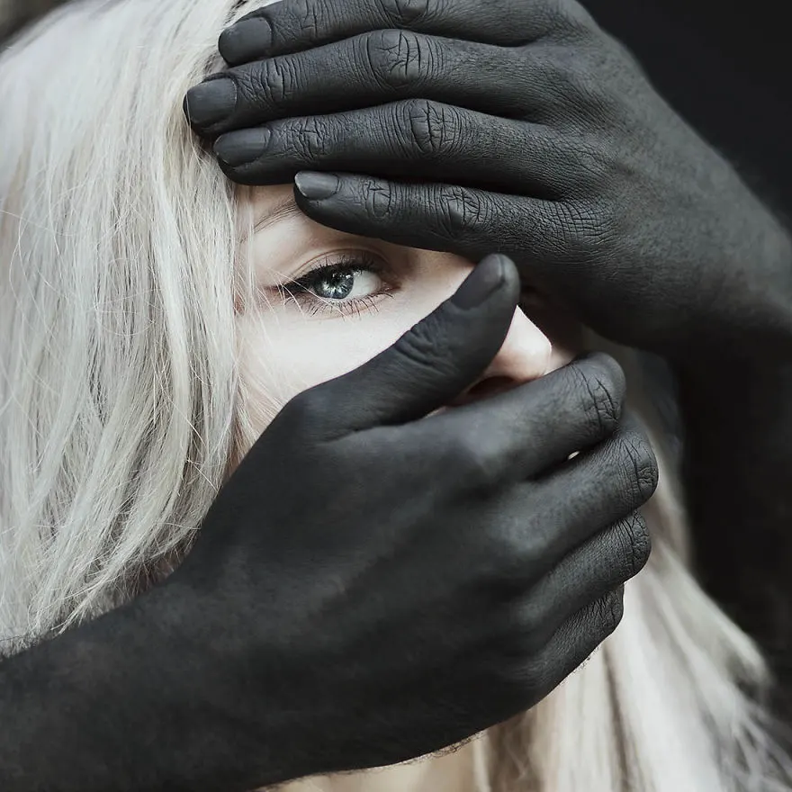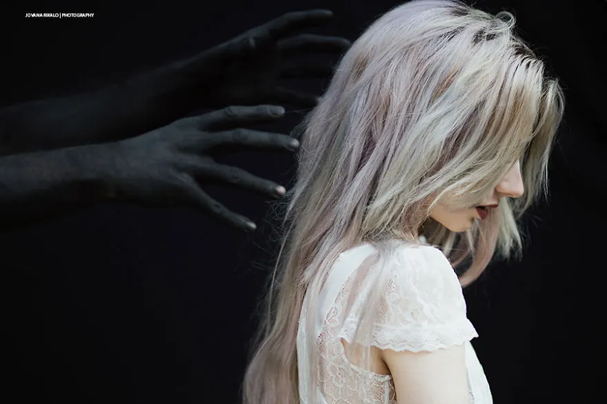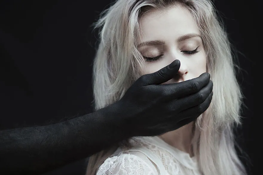 ช่างภาพคนนี้ ชื่อ Jovana Rikalo ถ่ายภาพPortrait ที่สื่อความหมายระหว่าง ความืดและความสว่าง โดยใช้มือผู้ชายเพ้นท์ให้เป็นสีดำ