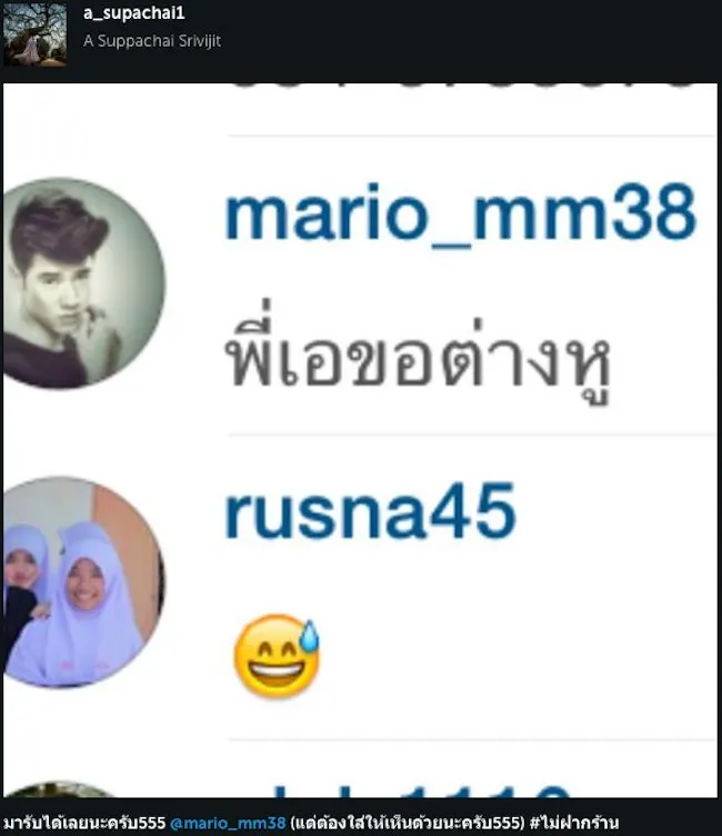 ถือว่าเป็นหนึ่งในน้องรักสุดๆ สำหรับพระเอกหน้าใส “มาริโอ้ เมาเร่อ” แม้ว่าจะไม่ค่อยได้ออกงานคู่กับผู้จัดการส่วนตัวอย่าง “พี่เอ ศุภชัย” สักเท่าไร แต่เมื่อหนุ่มโอ้เห็นพี่เอไปเที่ยวลอนดอนพร้อมใส่ต่างหูคู่ยักษ์ หนุ่มโอ้ถึงกับต้องร้องขอเลยทีเดียว น่ารักขนาดนี้พี่เอยอมให้ทุกอย่างแหละจ้า