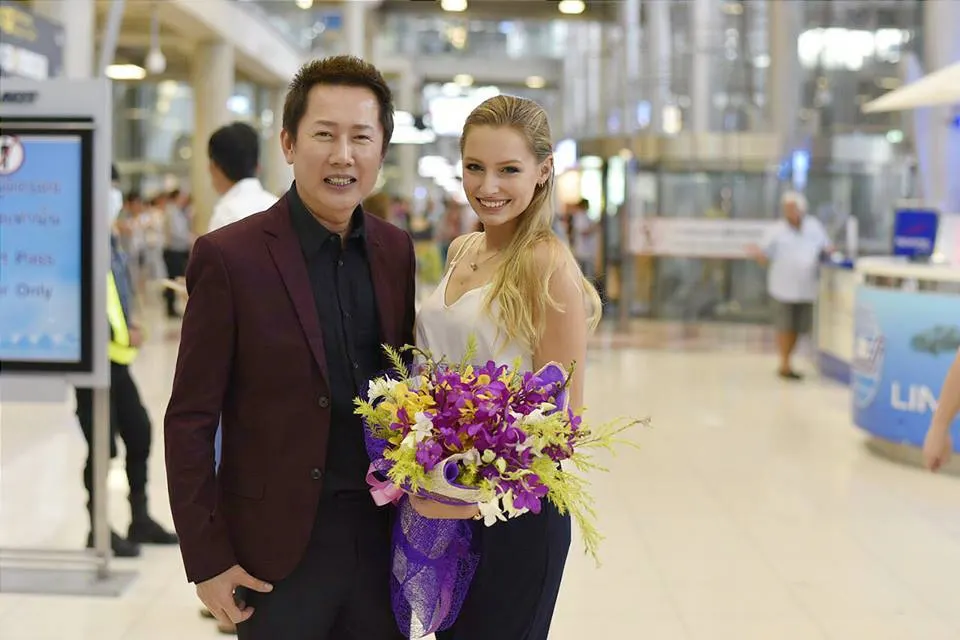 คุณณวัฒน์ อิสรไกรศีลประธานและผู้ก่อตั้งมิสแกรนด์ อินเตอร์เนชั่นแนลให้การต้อนรับนางสาวแคลล์ อลิซาเบธ ปาร์คเกอร์