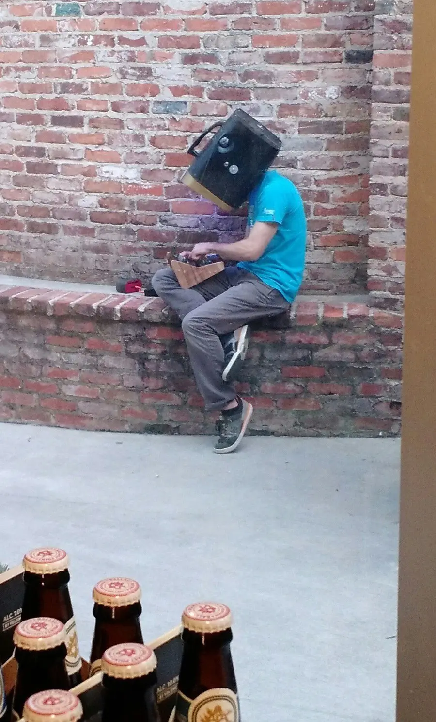 13. ชายที่มีกระเป๋าอยู่บนหัว