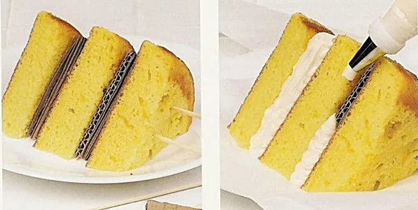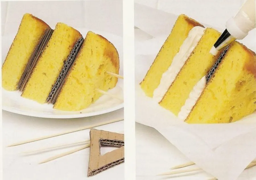 17. ภาพของเค้กหน้านุ่ม ครีมแน่น แท้จริงแล้วข้างในมันมี "กระดาษลัง" ยัดอยู่ แล้วใช้ "ไม้จิ้มฟัน" ในการยึดติด