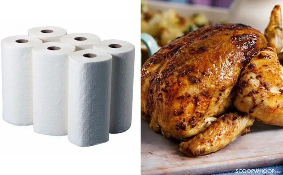 10. ไก่ที่ดูตัวอวบอิ่มน่ากิน ข้างในมันถูกยัดไส้ด้วย "ทิชชู่"