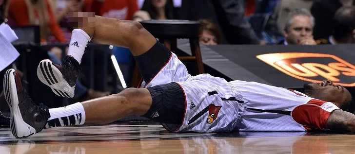 Kevin Ware นักกีฬาบาสเกตบอล ได้รับบาดเจ็บจากการแข่งขันจนกระดูกหักแถมยังโผล่ออกมาให้เห็นอีกด้วย