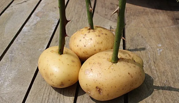 โดยมันฝรั่งจะทำหน้าที่ให้อาหารและน้ำทำให้ต้นกุหลาบเติบโตได้ดี จากนั้นก็นำลงไปวางไว้นหลุมที่ขุด ห่างกันต้นละ 6 นิ้ว