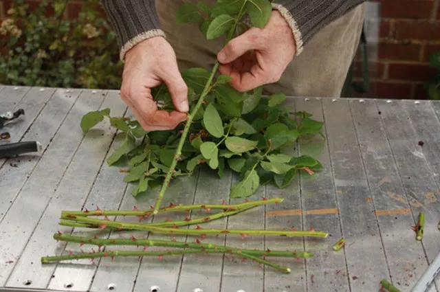 จากนั้นก็ตัดกิ่งกุหลาบจากต้น