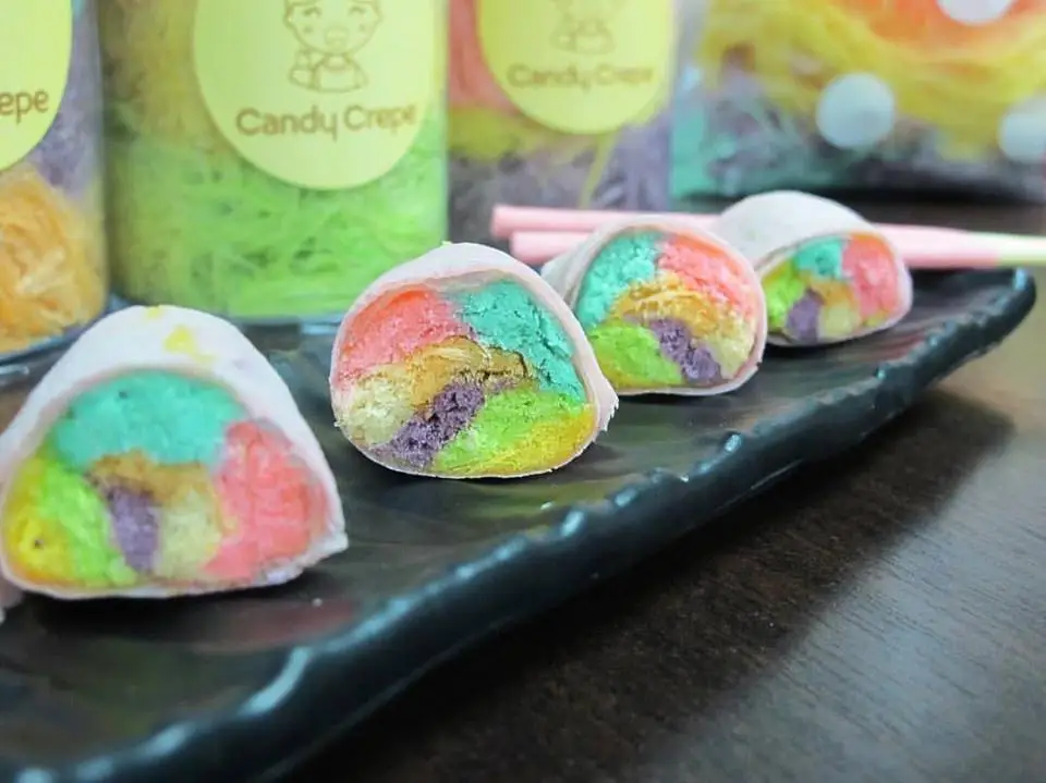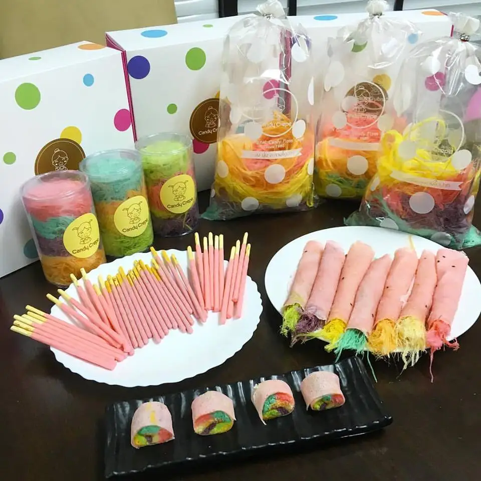 แคนดี้เครปรสป้อกกี้สตรอว์เบอร์รี่เครปมาพร้อมกับแคนดี้สายรุ้งเจ็ดสี ว้าวววววว😍😍😍😍😍😍