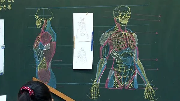 การวาดรูปที่ต้องบอกว่าไม่ธรรมดา เมื่อคุณครูท่านนี้สามารถทำให้ห้องเรียนไม่น่าเบื่ออีกต่อไปด้วยการวาดภาพโครงสร้างร่างกายได้อย่างน่าทึ่ง โดยรูปที่อาจารย์วาดนั้นจะแสดงรายละเอียดในส่วนต่าง ๆ ของร่างกาย เช่นกระดูก กล้ามเนื้อ ได้อย่างสวยงาม
