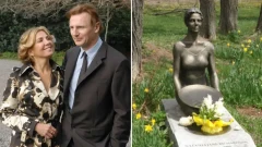 ผู้ต้องหาปลอมตัวเป็นรูปปั้นเพื่อหลบหนีตำรวจ ถูกจับได้