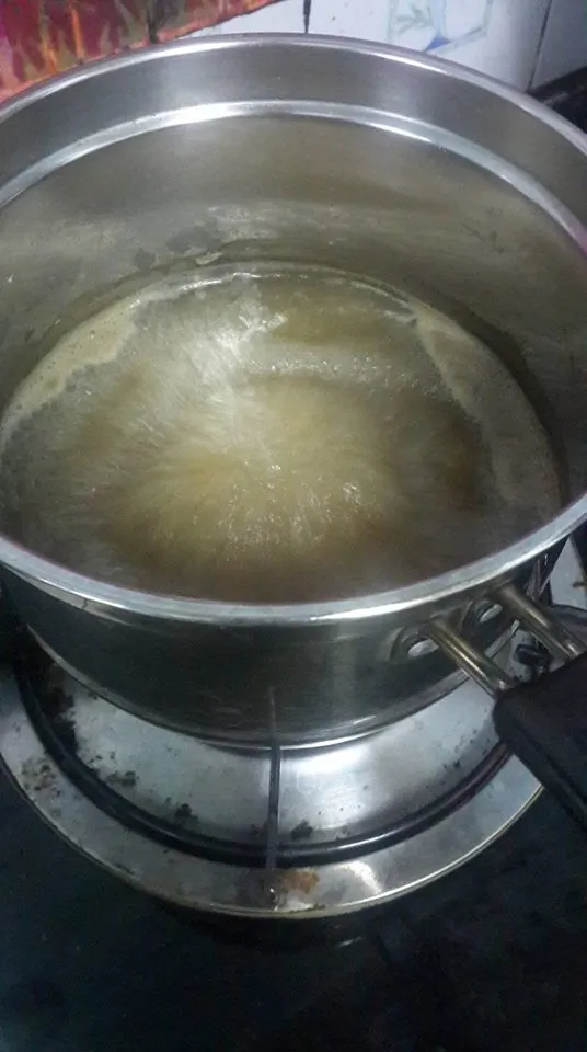 ต้มปลาร้า 20 นาที จากนั้นกรองเอาเศษทั้งหลายแหล่ออกให้เหลือแค่น้ำ