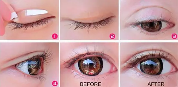 เทปติดตาสองชั้น ถือว่าเป็นไอเทมพื้นฐานของสาวหมวย กันเลยทีเดียว เพราะนอกจากจะหาซื้อง่าย ใช้เวลาติดไม่นาน และอยู่ทนตลอดวันแล้ว ยังทำให้ตานั้นดูโตได้อย่างน่าอัศจรรย์ เพียงแค่ลอกแล้วติดลงไปที่ชั้นตาเท่านั้น สาวๆ ก็จะมีชั้นตาได้ในทันที แต่ใช่ว่าดีขนาดนี้ข้อเสียจะไม่มีนะจ๊ะ เพราะเจ้าเทปติดตาสองชั้นเนี่ยถ้าแต่งหน้าหมดสิทธิ์ติดเลยจ้า เพราะฝุ่นและผงจากเครื่องสำอางจะเข้าไปติดที่กาวทำให้กาวหลุดลอกได้ง่าย แถมบางครั้งก็ทำให้เห็นตัวสติกเกอร์วาววับอยู่บนตาด้วยดูโป๊ะไปอีกค่า