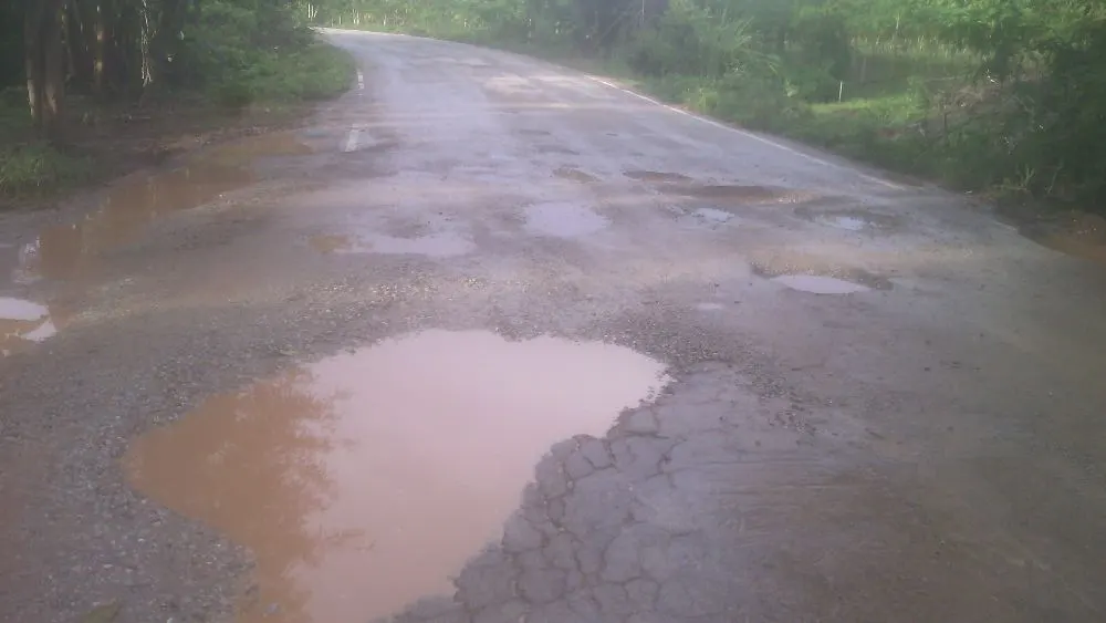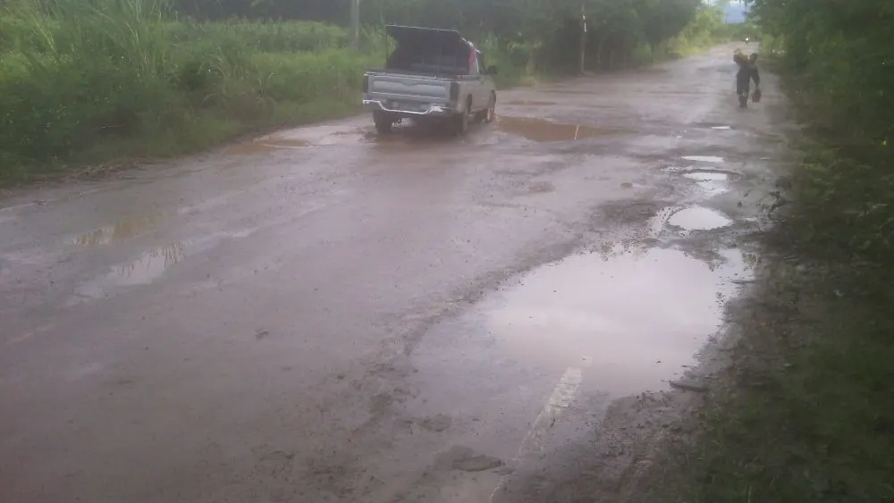ไม่นึกว่า..ถนนเข้าสถานที่ท่องเที่ยวของอำเภอเวียงแก่น.คือผาได ซึ่งตั้งอยู่ ที่บ้านห้วยลึก ตำบลม่วงยาย อำเภอเวียงแก่น เชียงราย จะเป็นดังนี้..ภาพมันฟ้อง ..อย่างนี้เรียกว่าถนนรึคระ...ไม่ทราบว่าองกรที่รับผิดชอบ...ตาบอดกันรึคระ...