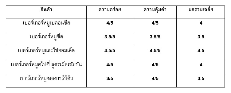 ตัวสุดท้าย : เบอร์เกอร์หมูซอสบาร์บีคิว (ราคา 25 บาท)