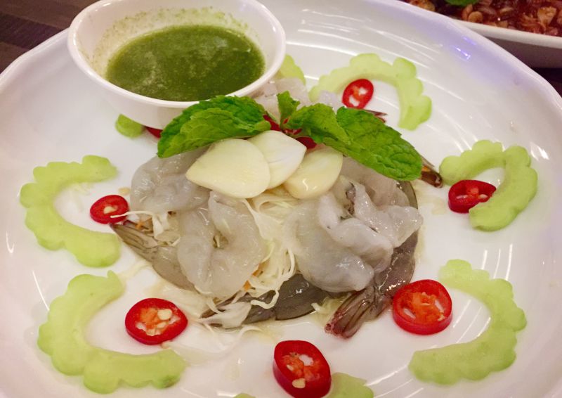เป็นอาหารที่นิยมทานกันขนาดที่กุ้งยังกระโดดอยู่ ใส่เครื่องลาบลงไป