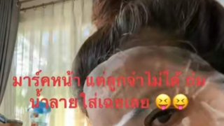 เมื่อเเม่กลัวลูกไม่มีคิ้ว ก็เอาดอกอัญชันทาไปเลยทั้งหน้า 🤣