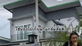 เมื่อให้น้องสาวไปเก็บผักมากินเเกล้มส้มตำสักนิด เเล้วดูที่ได้😅