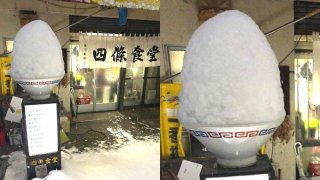 เมื่อร้านราเมง วางชามยักษ์ไว้หน้าร้าน พอหิมะตกเท่านั้นแหละ นึกว่าร้านน้ำแข็งใส