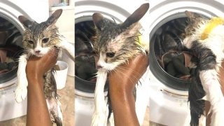 ทั้งขำทั้งสงสาร!! เมื่อน้องแมวตัวแสบชื่อ ออฟติมัส แอบไปนอนในเครื่องซักผ้า