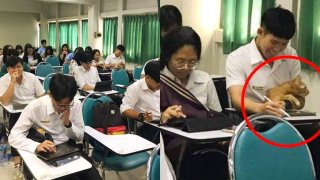 เอ็นดูมาก!! นศ.สัตวแพทย์หนุ่ม หอบแมวส้ม มานั่งเรียนด้วย ทาสแมว ทาสใจสุดๆ
