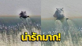 น่ารักมาก!! คุณลุงถ่ายรูป "น้องฮิปโป" เกาะกำแพง มองผู้คนเดินผ่านไปมา อย่างมีความสุข