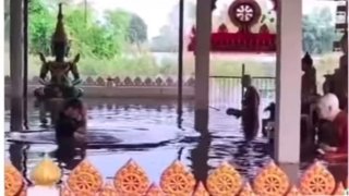 ศรัทธาแรงกล้า ถึงน้ำมาเราก็จะไหว้พระ ใครจะทำแมะ😂