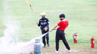 แชร์สนั่น! นร.รับบท เป็นนักดับเพลิงสาว ดับไฟด้วยจริตนางงาม