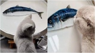 ลูกแมวแสนน่ารักในจีน พยายามกินปลาภาพวาด 3 มิติ เพราะเหมือนจริงมากจนสับสน!! (มีคลิป)